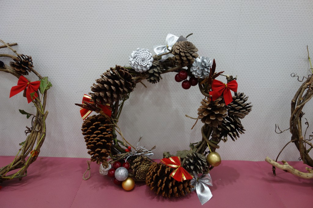 いつもアート教室でお世話になっている「ともひろ先生」にお願いして、希望者みんなで賑やかにリースを作りました♪